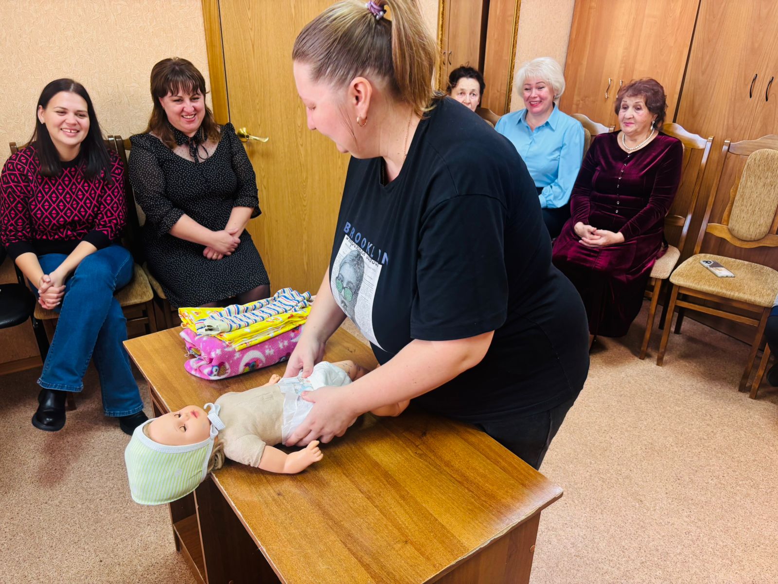 Ведущие провели интересные и веселые конкурсы. Во время чаепития будущим мамам вручили буклеты «Социальная няня» и рассказали о пункте проката предметов первой необходимости для новорожденных.