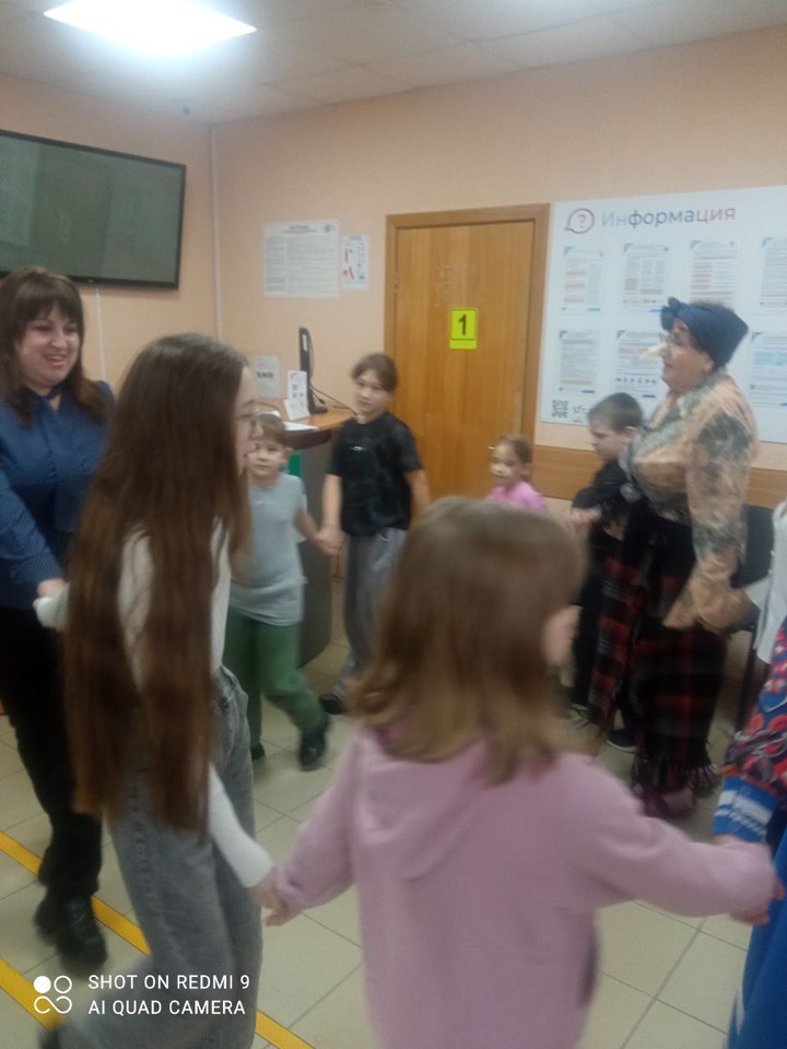 Сказочные герои: Баба Яга, Зайчик, Зима пригласили ребят в увлекательные игры и хороводы. Хор центра «Факел» исполнил веселые песни о Зиме. В заключение состоялось чаепитие со сладостями.