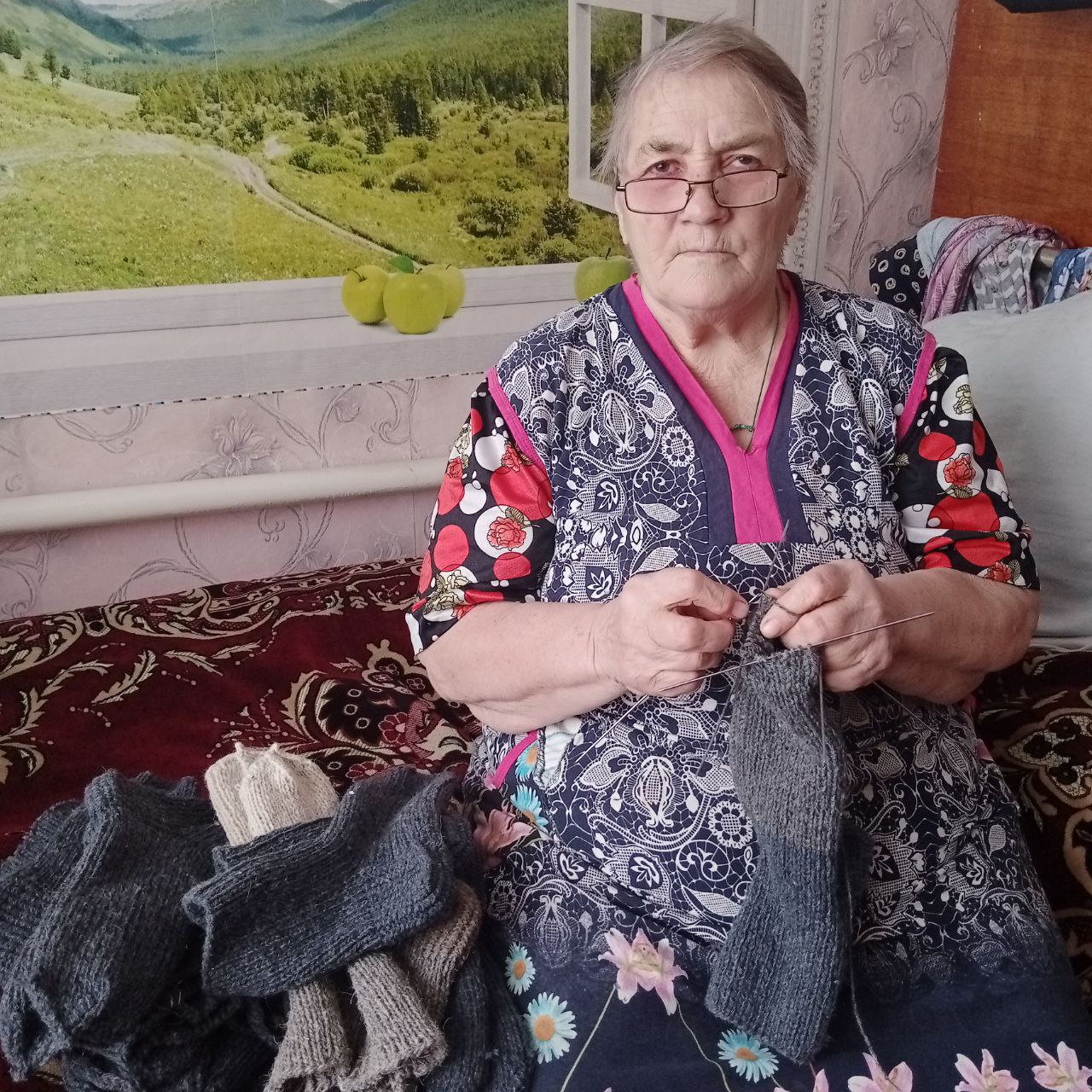 Получатели социальных услуг вяжут носки для бойцов СВО.